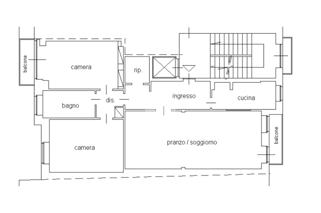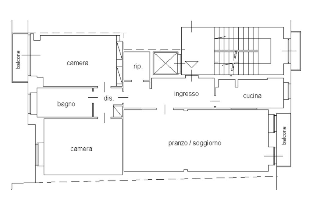 L'immobile venduto parzialmente arredato, è così composto: ingresso, cucina, ampio soggiorno, ripostiglio, disimpegno, due camere, bagno e due balconi.